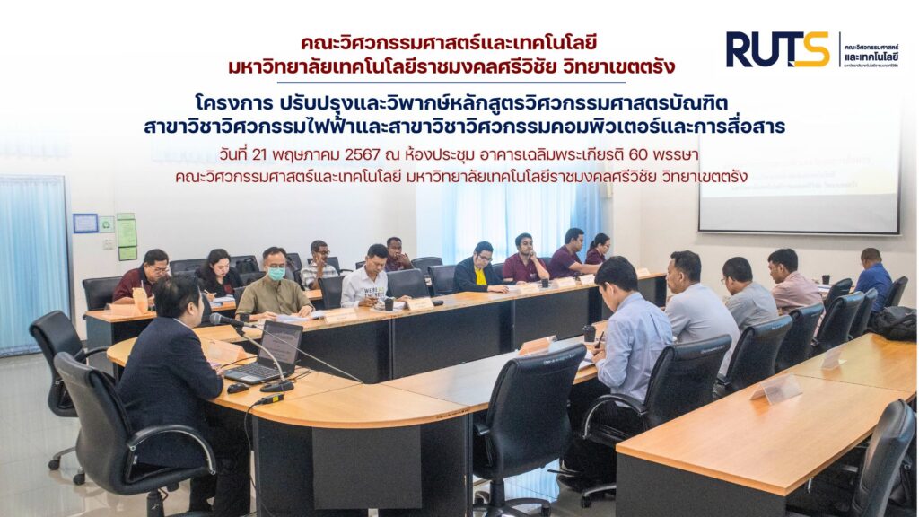 วันที่ 21 พฤษภาคม 2567 นำโดยผู้ช่วยศาสตราจารย์กิตติกร ขันแกล้ว คณบดีคณะวิศวกรรมศาสตร์และเทคโนโลยี มหาวิทยาลัยเทคโนโลยีราชมงคลศรีวิชัย วิทยาเขตตรัง พร้อมด้วยผู้ช่วยศาสตราจารย์นเรศ ขวัญทอง รองคณบดีฝ่ายบริหารและวางแผน ผู้ช่วยศาสตราจารย์ ดร.ชัยวัฒน์ สากุล หัวหน้าสาขาวิศวกรรม และคณาจารย์ ได้เข้าร่วมวิพากษ์หลักสูตรวิศวกรรมศาสตรบัณฑิต สาขาวิชาวิศวกรรมไฟฟ้าและสาขาวิชาวิศวกรรมคอมพิวเตอร์และการสื่อสาร โดยได้รับเกียรติจาก นายอมร ลีลาวงสันติ กรรมการผู้จัดการ บริษัทอินโนเวชั่นเทคโนโลยี ภูเก็ตจำกัด นายเจษฎา โชติวัฒนศักดิ์ ผู้จัดการโรงงาน บริษัท เอเชี่ยนน้ำมันปาล์ม จำกัด รองศาสตราจารย์ พิชิต ลำยอง สถาบันเทคโนโลยีพระจอมเกล้าเจ้าคุณทหารลาดกระบัง ประธานมาตรฐานการศึกษา จากสภาวิศวกร รองศาสตราจารย์ ดร.วัฒนพงศ์ เกิดทองมี อาจารย์ประจำสำนักวิชาวิศวกรรมศาสตร์และเทคโนโลยี มหาวิทยาลัยวลัยลักษณ์ นายอำนาจ จิตพิทักษ์ ผู้จัดการฝ่ายวิเคราะห์ข้อมูล AIS ภาคใต้และนายอรรถวิทย์ อินนุรักษ์ วิศวกร 6 ศูนย์การขายและวิศวกรรมบริการส่วนบริการลูกค้าตรัง บริษัท โทรคมนาคม จำกัด (มหาชน) เป็นกรรมการผู้ทรงคุณวุฒิเข้าร่วมวิพากษ์หลักสูตร ณ ห้องประชุม อาคารเฉลิมพระเกียรติ 60 พรรษา คณะวิศวกรรมศาสตร์และเทคโนโลยี มหาวิทยาลัยเทคโนโลยีราชมงคลศรีวิชัย วิทยาเขตตรัง