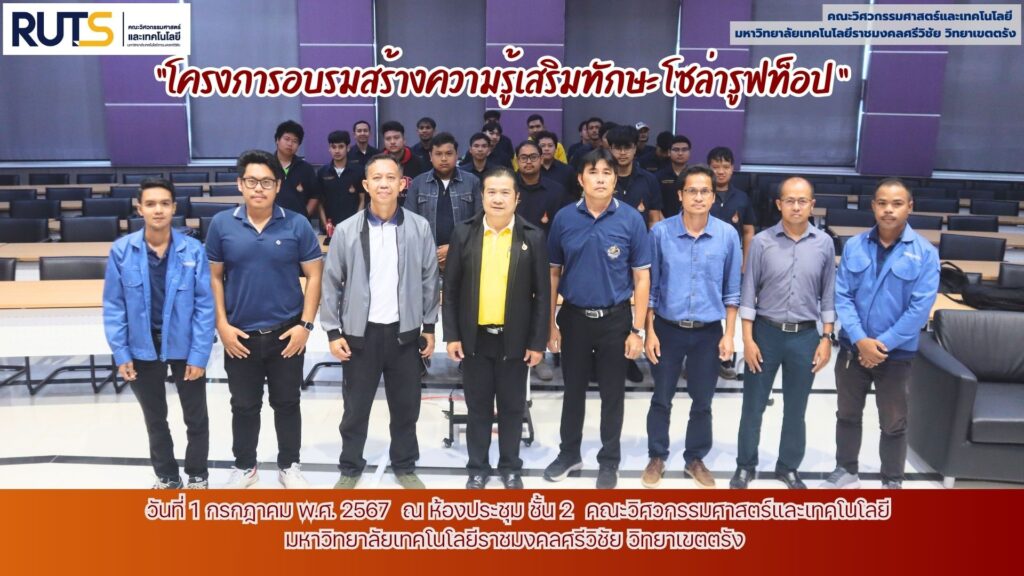 ระหว่างวันที่ 11-12 กรกฎาคม 2567 คณะวิศวกรรมศาสตร์และเท … อ่านเพิ่มเติม คณะวิศวะฯ มทร.ศรีวิชัย วิทยาเขตตรัง จับมือ บริษัท อินโนเวชั่น เทคโนโลยี ภูเก็ต จำกัด จัดโครงการอบรมสร้างความรู้เสริมทักษะเรื่อง “โซล่ารูฟท็อป ”