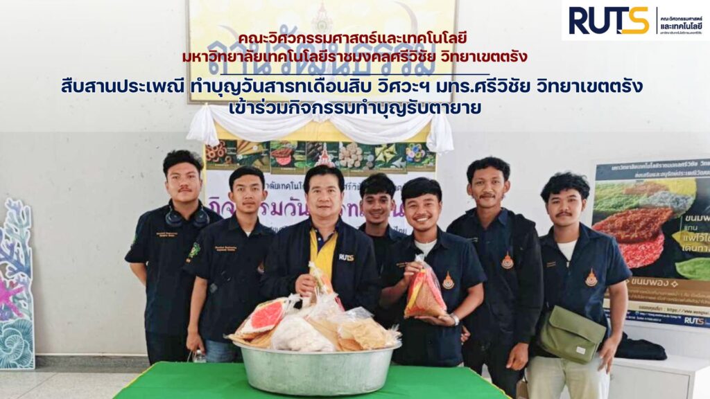 เมื่อวันที่ 17 กันยายน 2567 นำโดย ผู้ช่วยศาสตราจารย์กิตติกร ขันแกล้ว คณบดีคณะวิศวกรรมศาสตร์และเทคโนโลยี คณะบุคลากรและนักศึกษา คณะวิศวกรรมศาสตร์และเทคโนโลยี มหาวิทยาลัยเทคโนโลยีราชมงคลศรีวิชัย วิทยาเขตตรัง ร่วมกิจกรรมทำบุญวันรับตายาย (บุญเดือนสิบแรก) ตามความเชื่อเป็นการต้อนรับบรรพบุรุษผู้ล่วงลับกลับสู่โลกมนุษย์ บางพื้นที่จะเรียกว่า “วันหมฺรับเล็ก” และเรียกวันส่งตายายในวันแรม 15 ค่ำ เดือน 10 ว่า “วันหมฺรับใหญ่”ซึ่งจัดโดยแผนกกิจการนักศึกษา มทร.ศรีวิชัย วิทยาเขตตรัง เพื่อร่วมพิธีทำบุญ วันที่ 18 กันยายน 2567 วัดไม้ฝาด อ.สิเกา จ.ตรัง ณ ลานวัฒนธรรมอาคารเฉลิมพระเกียรติ 80 พรรษา ฯ มทร.ศรีวิชัย วิทยาเขตตรัง