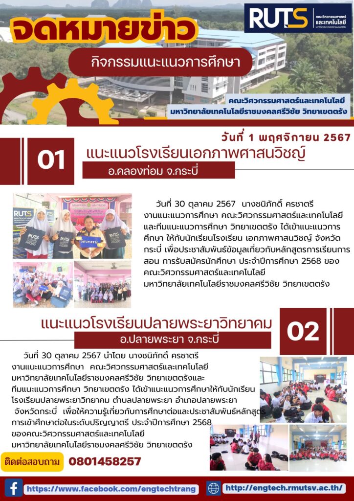 จดหมายข่าว วิศวะ มทร.ศรีวิชัย วิทยาเขตตรัง เปิดโลกการเรียนรู้.. ฝึกประสบการณ์ทางด้านวิศวกรรมให้กับนักเรียน โรงเรียนกันตังพิทยากร อ.กันตัง จังหวัดตรัง11 ตุลาคม 202411 ตุลาคม 2024