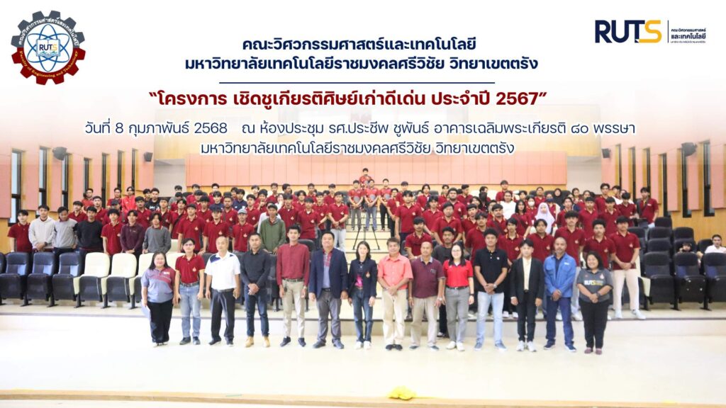 วันที่ 8 กุมภาพันธ์ 2568 คณะวิศวกรรมศาสตร์และเทคโนโลยี มหาวิทยาลัยเทคโนโลยีราชมงคลศรีวิชัย วิทยาเขตตรัง จัดโครงการเชิดชูเกียรติศิษย์เก่าดีเด่น ประจำปี 2567 ณ ห้องประชุม รศ.ประชีพ ชูพันธ์ อาคารเฉลิมพระเกียรติ ๘๐ พรรษา มหาวิทยาลัยเทคโนโลยีราชมงคลศรีวิชัย วิทยาเขตตรัง โดยมี นางสาวขวัญชีวา หยงสตาร์ รองคณบดีฝ่ายพัฒนานักศึกษา เป็นผู้กล่าวรายงานวัตถุประสงค์การจัดโครงการ และได้รับบเกียรติจากผู้ช่วยศาสตราจารย์นเรศ ขวัญทอง รองคณบดีฝ่ายบริหารและวางแผน เป็นประธานกล่าวเปิดงาน และมอบรางวัลศิษย์เก่าดีเด่น ประจำปี 2567 จำนวน 5 ท่าน ได้แก่ นาย วัชรพงศ์ ไชยรัตน์ ศิษย์เก่าสาขาวิชาวิศวกรรมอิเล็กทรอนิกส์ นายปิยะพงษ์ สีนวน ศิษย์เก่าสาขาวิชาเทคโนโลยีสารสนเทศ นายณัฐพล ทิวทอง ศิษย์เก่าสาขาวิชาวิศวกรรมสารสนเทศและการสื่อสาร นายวีระยุทธิ์ ศรีรักษ์ ศิษย์เก่าสาขาวิชาเทคโนโลยีไฟฟ้า และนายธนากร อักษรพันธ์ ศิษย์เก่าสาขาวิชาเทคโนโลยีโยธา