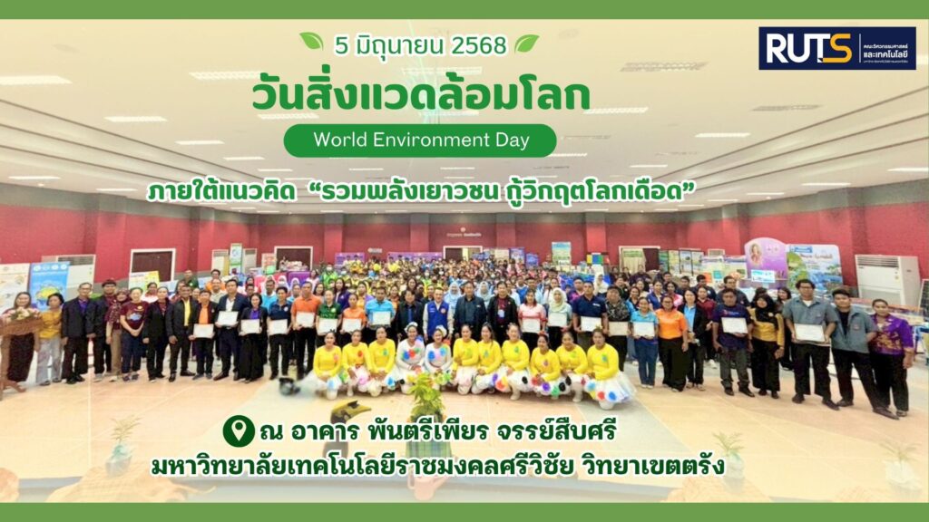 วันที่ 5 มิ.ย. 2568 ผู้ช่วยศาสตร์ตราจารย์กิตติกร ขันแกล้ว คณบดีคณะวิศวกรรมศาสตร์และเทคโนโลยี มหาวิทยาลัยเทคโนโลยีราชมงคลศรีวิชัย วิทยาเขตตรัง พร้อมด้วยบุคลากรในสังกัด เข้าร่วมกิจกรรมวันสิ่งแวดล้อมโลก 5 มิถุนายน 2568 ภายใต้แนวคิด “รวมพลังเยาวชน กู้วิกฤตโลกเดือด” ซึ่งจัดโดย ศูนย์ถ่ายทอดเทคโนโลยีการกำจัดขยะและบำบัดน้ำเสียตามแนวพระราชดำริ ภาคใต้ ร่วมกับ มทร.ศรีวิชัย วิทยาเขตตรัง กิจกรรมวันสิ่งแวดล้อมโลก ประจำปี 2568 ในครั้งนี้ได้รับเกียรติจาก นายมานิตย์ ท่าจีน นายอำเภอสิเกา เป็นประธานในพิธีกล่าวเปิดกิจกรรมฯ ณ ห้องประชุมพันตรีเพียรจรรย์สืบศรี มทร.ศรีวิชัย วิทยาเขตตรัง โดยมีนักศึกษาคณะวิศวกรรมศาสตร์และเทคโนโลยี ร่วมจัดบูธให้ความรู้เกี่ยวกับนวัตกรรมรักษ์โลก เช่น ตู้อบพลังงานผสมประสานควบคุมด้วยระบบ IOT ทุ่นติดตามการไหลของกระแสน้ำโดยใช้พลังงานแสงอาทิตย์ เป็นต้น