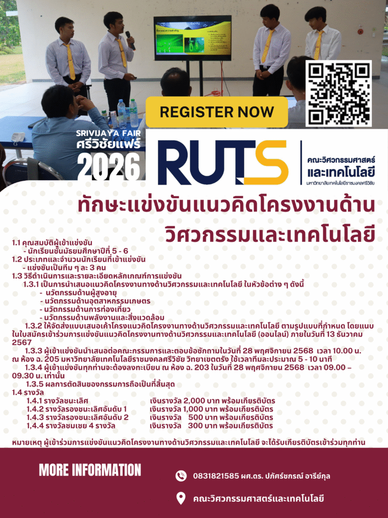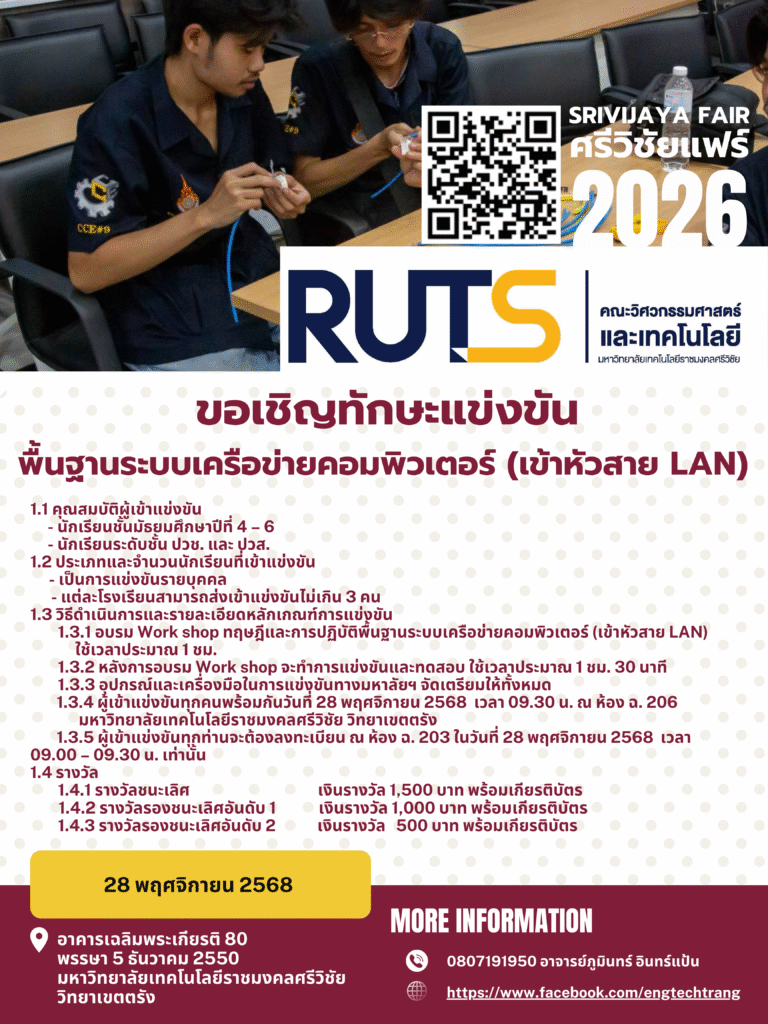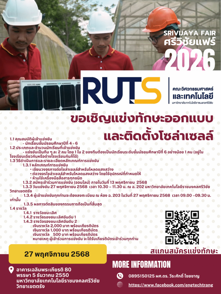 ข่าวประชาสัมพันธ์ คณะวิศวกรรมศาสตร์และเทคโนโลยี มทร.ศรีวิชัย วิทยาเขตตรัง เข้าร่วมกิจกรรมฝึกซ้อมพิธีรับพระราชทานปริญญาบัตร ประจำปีการศึกษา 256711 กันยายน 202511 กันยายน 2025