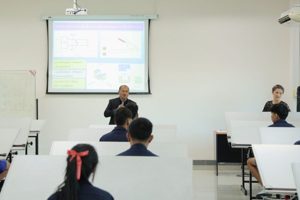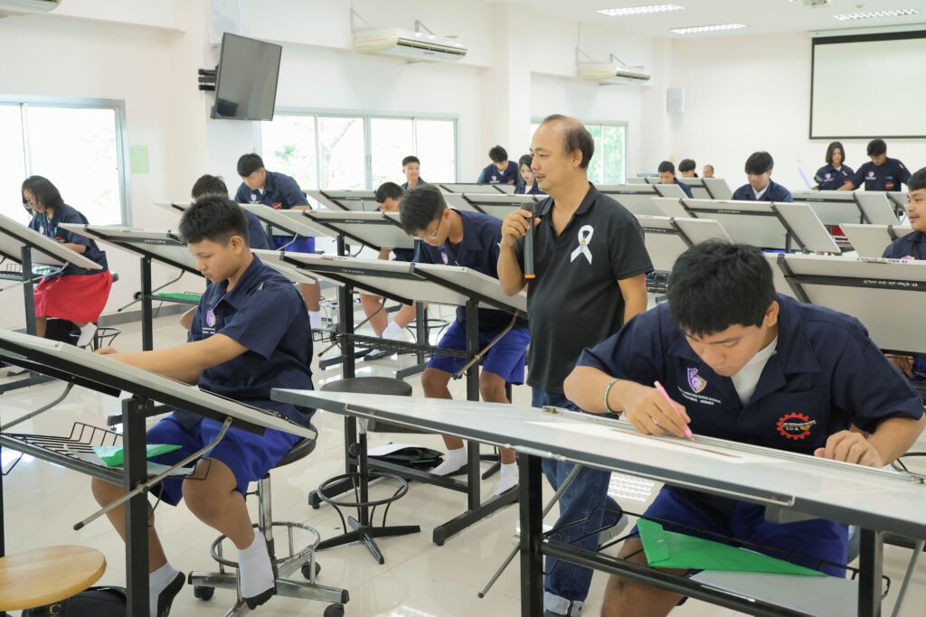 ร่วมบรรยายและให้ความรู้ในหัวข้อ “การเขียนแบบวิศวกรรม (Engineering Drawing)” เพื่อเสริมสร้างทักษะพื้นฐานด้านการเขียนแบบและกราฟิกวิศวกรรม ช่วยให้นักเรียนสามารถเขียนแบบได้อย่างถูกต้อง รวดเร็ว และแม่นยำ กิจกรรมจัดขึ้น ณ ห้องปฏิบัติการ วศ.405 อาคารเฉลิมพระเกียรติ 60 พรรษา คณะวิศวกรรมศาสตร์และเทคโนโลยี มทร.ศรีวิชัย วิทยาเขตตรัง โดยมุ่งหมายให้ผู้เข้าร่วมสามารถนำความรู้ไปต่อยอดพัฒนาศักยภาพทางด้านวิศวกรรม เพิ่มแรงบันดาลใจ และเตรียมความพร้อมสำหรับการศึกษาต่อในสาขาวิศวกรรมศาสตร์ต่อไป