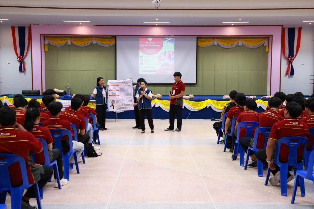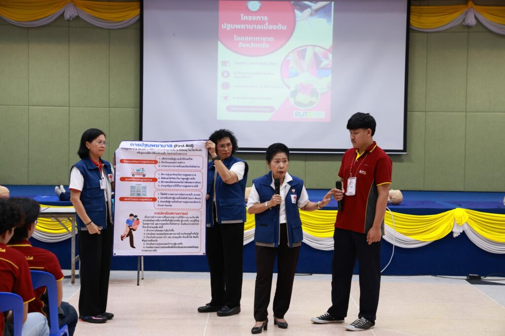 นที่ 4 กุมภาพันธ์ 2569 สโมสรนักศึกษา ร่วมกับงานพัฒนานักศึกษาและศิษย์เก่าสัมพันธ์ คณะวิศวกรรมศาสตร์และเทคโนโลยี มหาวิทยาลัยเทคโนโลยีราชมงคลศรีวิชัย วิทยาเขตตรัง จัดโครงการอบรมปฐมพยาบาลเบื้องต้นสำหรับนักศึกษาชั้นปีที่ 1 จำนวน 150 คน เพื่อเสริมสร้างความรู้และทักษะด้านการช่วยเหลือเบื้องต้นในสถานการณ์ฉุกเฉิน โดยได้รับเกียรติจากผู้ช่วยศาสตราจารย์กิตติกร ขันแกล้ว รักษาราชการแทนคณบดีคณะวิศวกรรมศาสตร์และเทคโนโลยี เป็นประธานในพิธีเปิดโครงการ พร้อมด้วยนางสาวขวัญชีวา หยงสตาร์ ที่ปรึกษาสโมสรนักศึกษา กล่าวรายงานวัตถุประสงค์ของโครงการ ภายในกิจกรรมได้รับเกียรติจากอาจารย์ปิยพรรณ กาฬวงศ์ ในนามเหล่ากาชาดจังหวัดตรัง พร้อมทีมวิทยากร ร่วมถ่ายทอดความรู้ด้านการปฐมพยาบาลเบื้องต้น ผ่านการบรรยายและกิจกรรมเชิงปฏิบัติ เพื่อให้นักศึกษาได้รับความรู้ความเข้าใจที่ถูกต้อง สามารถนำไปประยุกต์ใช้ได้อย่างเหมาะสมในสถานการณ์ต่าง ๆ รวมถึงการพัฒนาศักยภาพ สร้างจุดแข็งให้กับตนเอง และเสริมสร้างปฏิสัมพันธ์ที่ดีต่อผู้พบเห็นและสังคม ทั้งนี้ โครงการดังกล่าวจัดขึ้น ณ อาคารพันตรีเพียร จรรย์สืบศรี มหาวิทยาลัยเทคโนโลยีราชมงคลศรีวิชัย วิทยาเขตตรัง