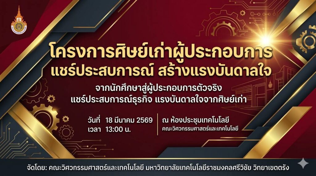 TV คณะวิศวกรรมศาสตร์และเทคโนโลยี มทร.ศรีวิชัย วิทยาเขตตรัง ร่วมกับ สำนักงานคณะกรรมการการอุดมศึกษา (อว.) และสมาคมศิษย์เก่า มทร.ศรีวิชัย จัดโครงการ “มทร.ศรีวิชัย แต้มสี เติมใจ ช่วยเหลือฟื้นฟูจากภัยน้ำท่วม น้องพี่วิศวะ-เทคโนอาสาพัฒนาร่วมกับศิษย์เก่า”13 มีนาคม 202613 มีนาคม 2026